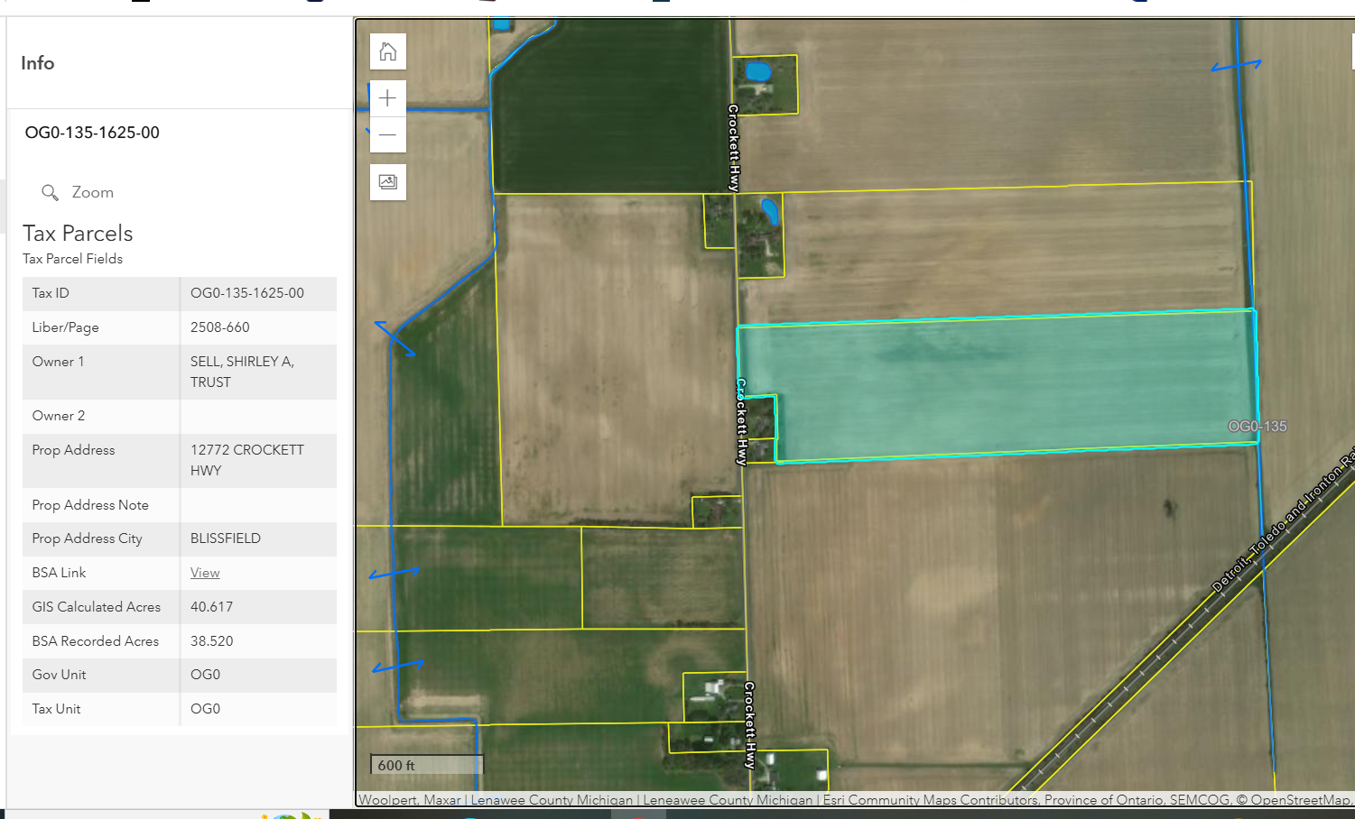 Approximately 80.2 acres (GIS Calculated), total of two adjacent parcels, Section 35 Ogden Township, lenawee County, Michigan