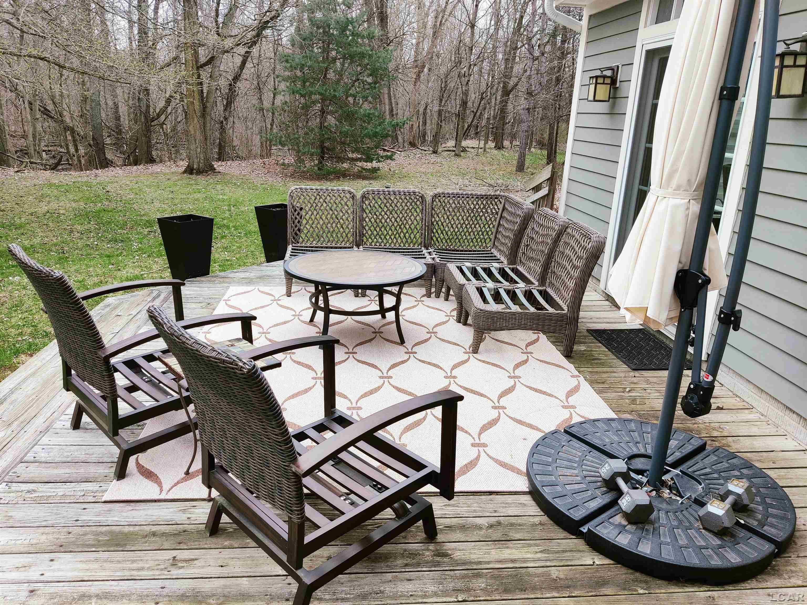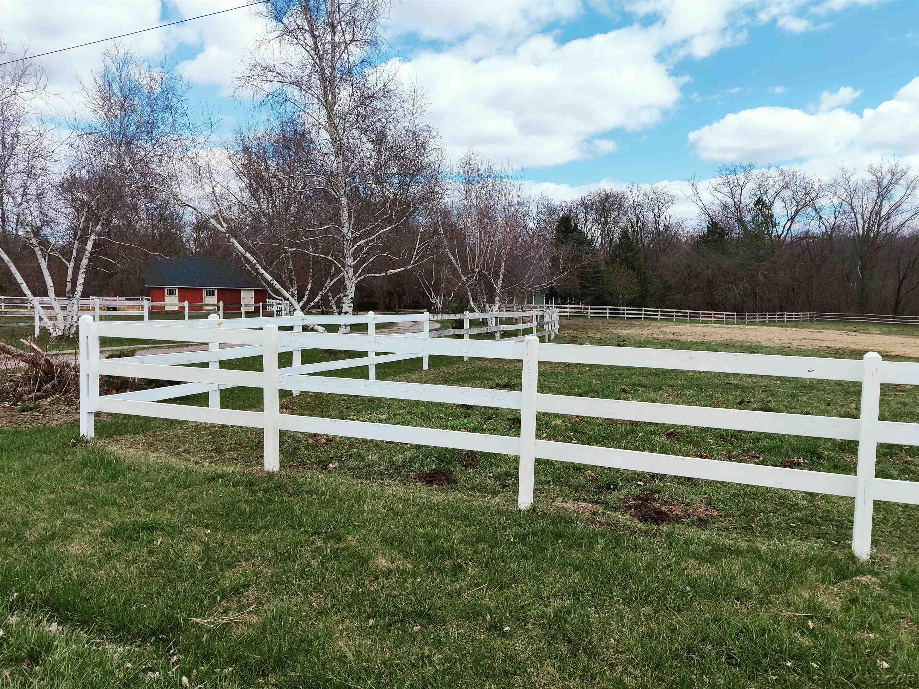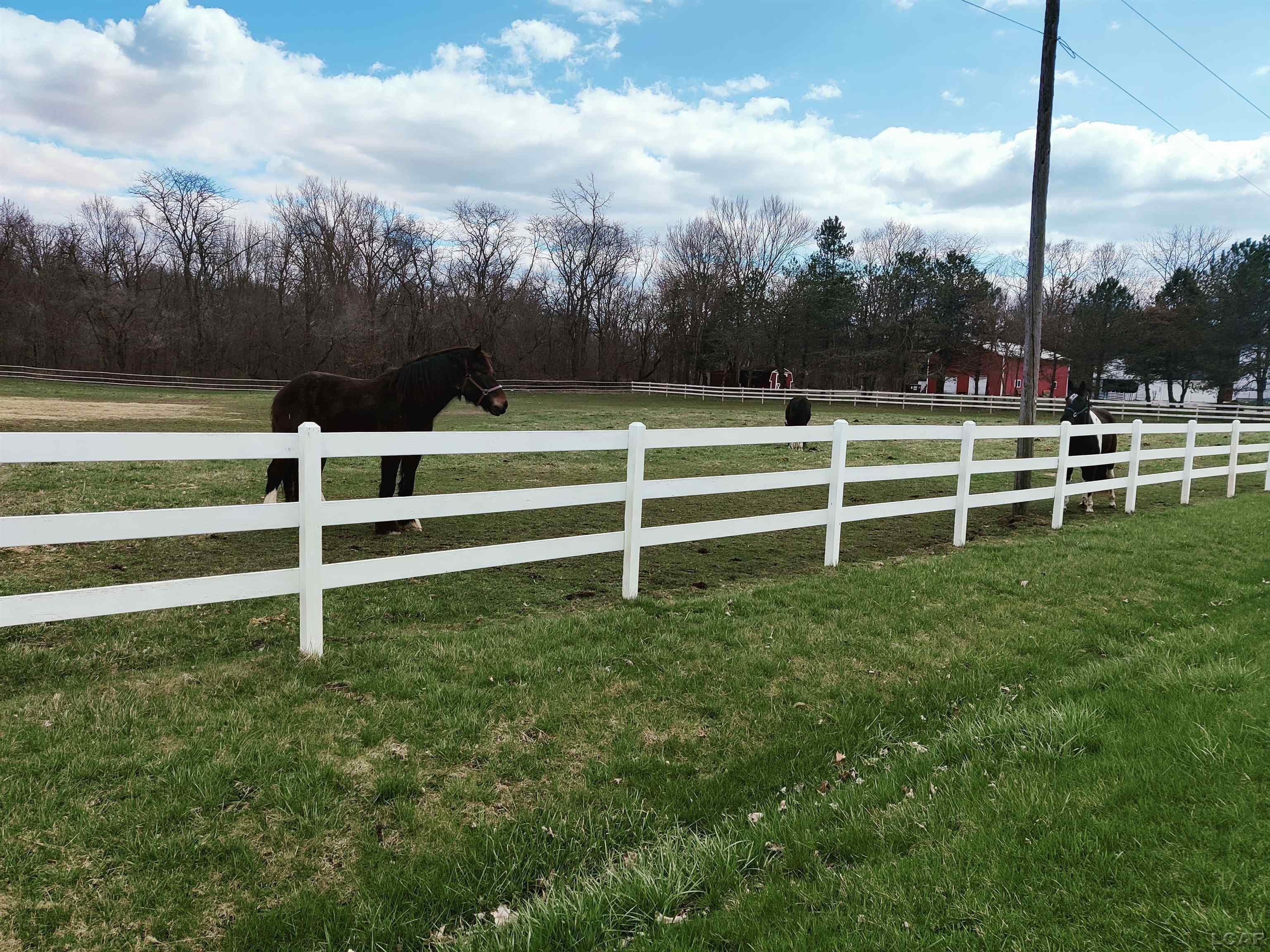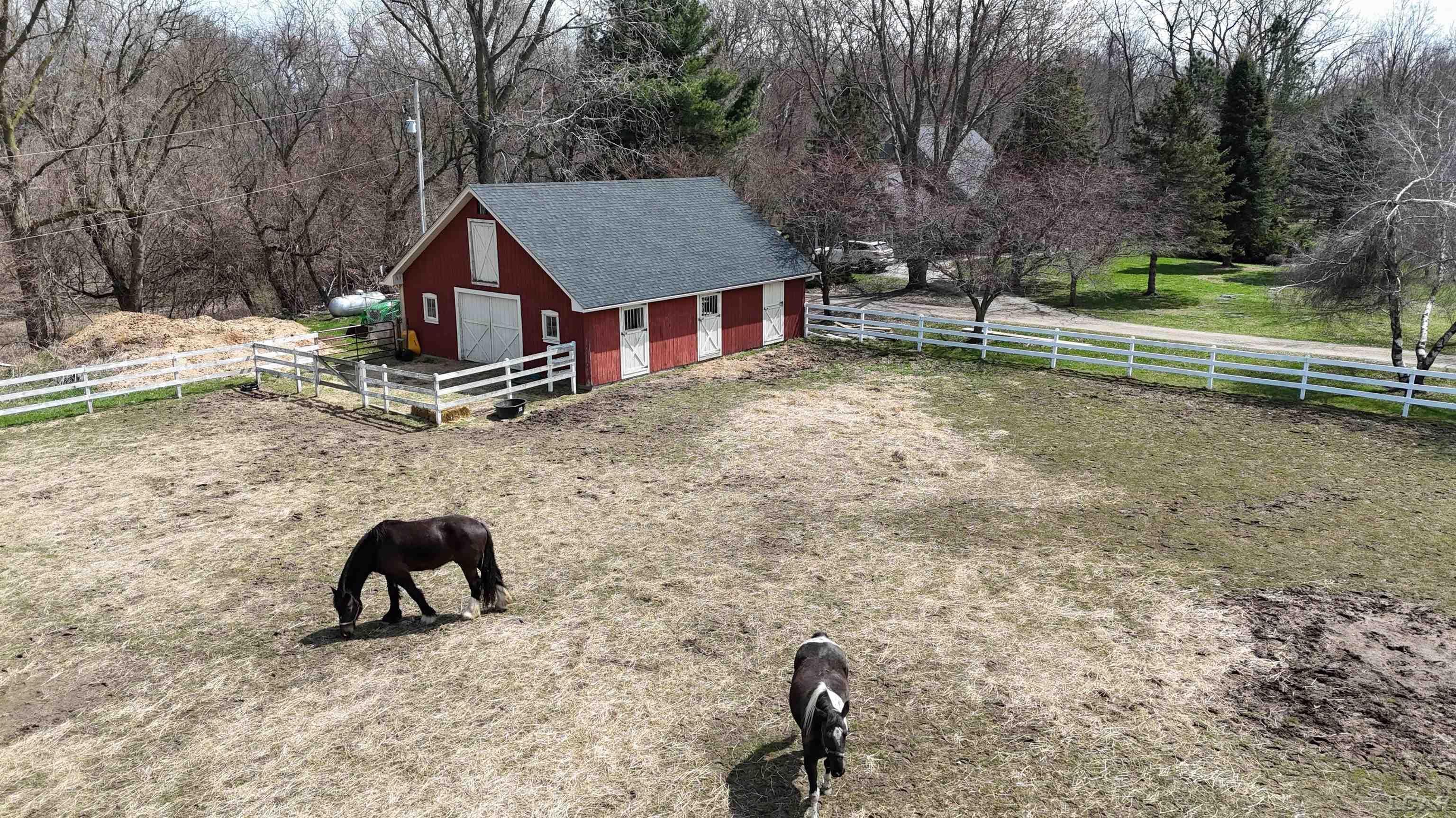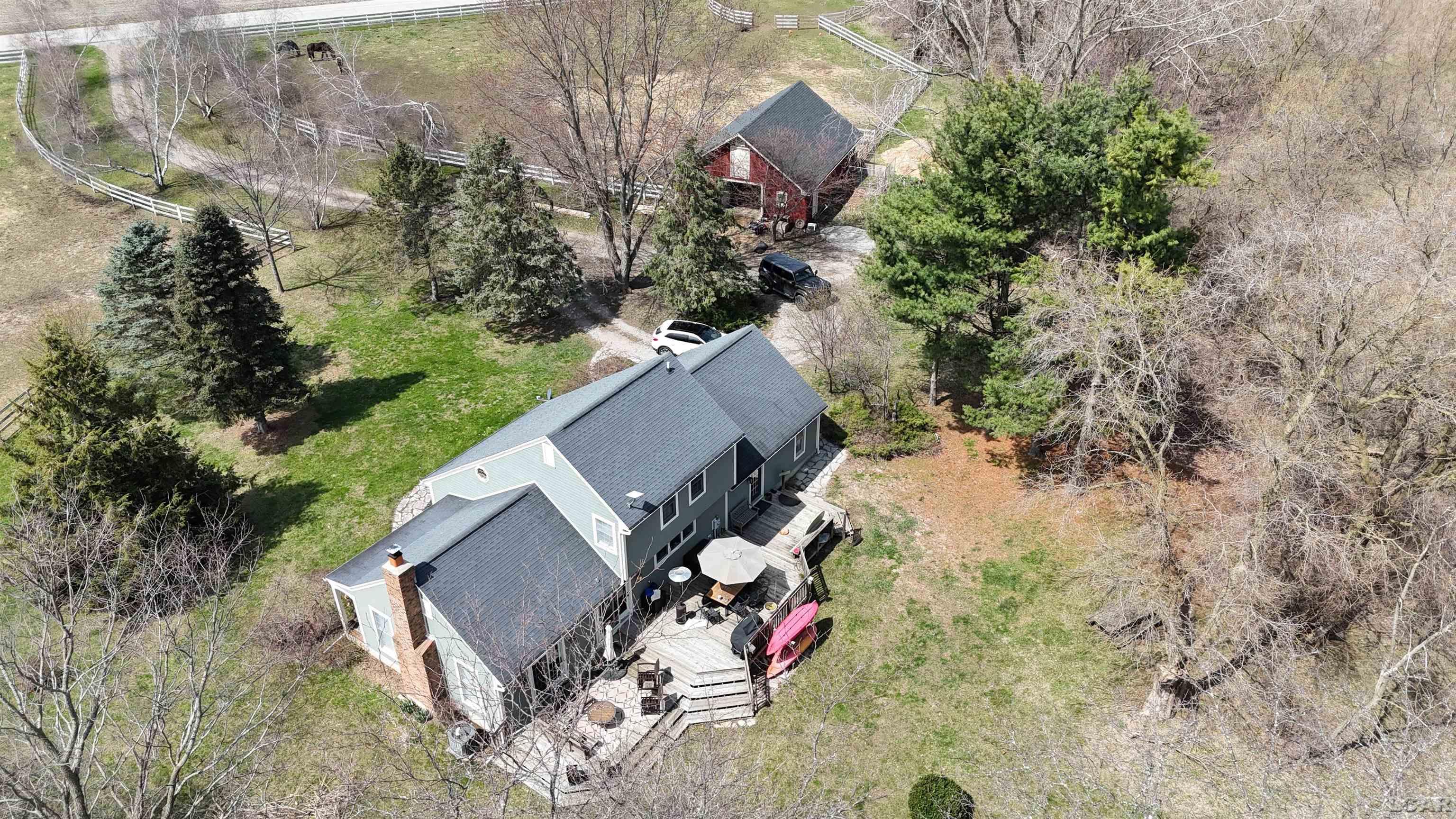 french doors lead to a 22 x 16 deck, and the deck off the livingrm is 17 x 12. The horse farm has 3 stalls and there are fenced pastures.