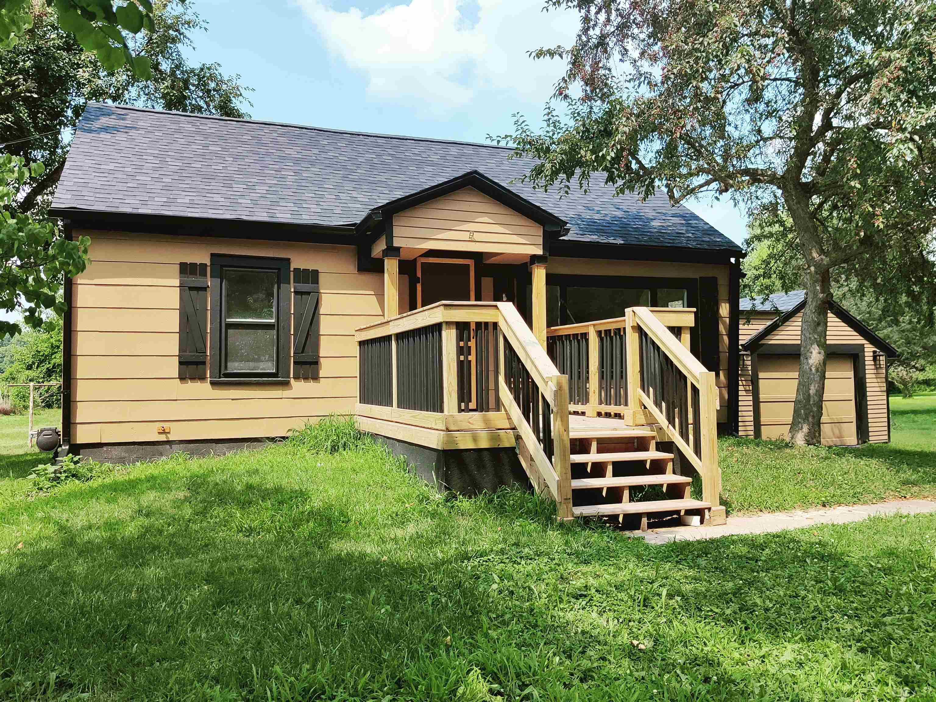 Charming updated Village home! This adorable, completely renovated home is ready for you to move in! Relax on the newly built front porch and deck. New kitchen cabinets, counters and new laminate floor for easy clean up! The eating area features a nice bay window to sit and view the large back yard. The living room has new carpet and an open stairway that leads to the large upstairs bedroom. The bath room is completely remodeled with all new fixtures and features a deep soaker tub and new vanity. The laundry room is 21 x 8 and can be used as a home office. The entire interior and exterior is freshly painted. The water heater and furnace is newer. The attached garage has some drywall and door opener.